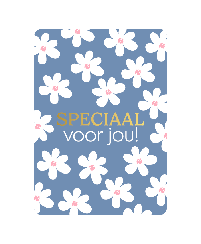Mooie wenskaart van stevige kwaliteit. De voorkant heeft de wit met goudkleurige tekst ‘Speciaal voor jou’. Op de achterkant staat alleen klein de merknaam vermeld. Er is dus genoeg ruimte om te schrijven.