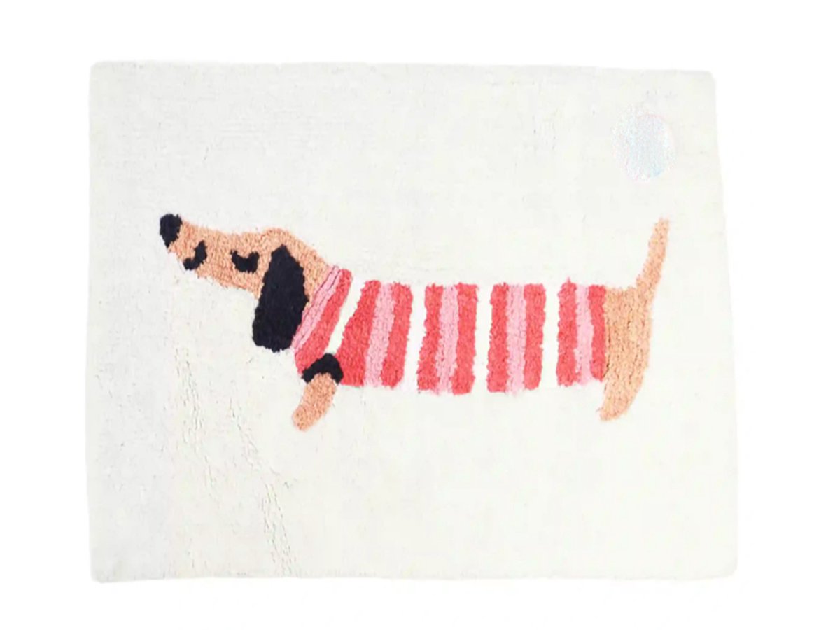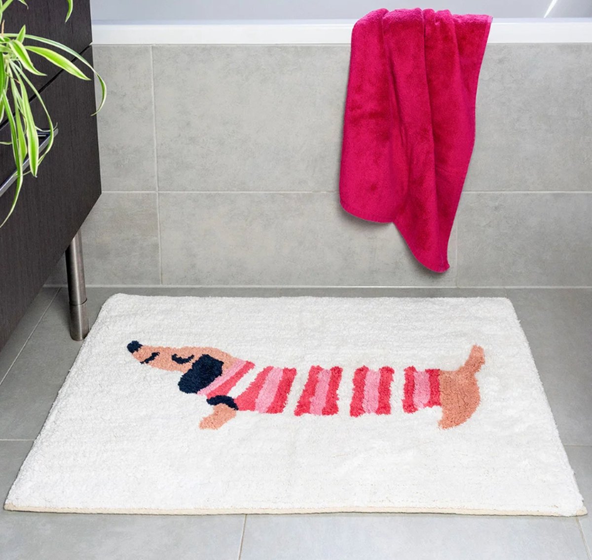 Een heerlijk zachte en goed waterabsorberende badmat, wat wil je nog meer na je bad of douche? Voorzien van een teckel is het ook nog eens een leuk object in je badkamer.