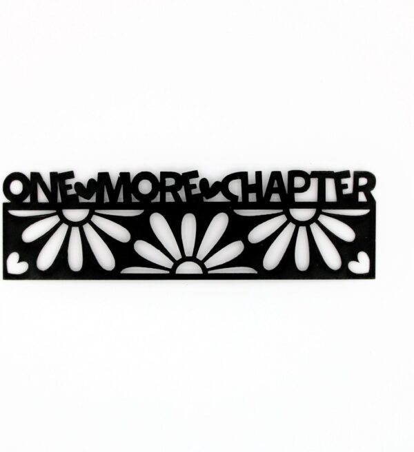 Een leuke boekenlegger met uitgestanste bloemen en de tekst “one more chapter”.