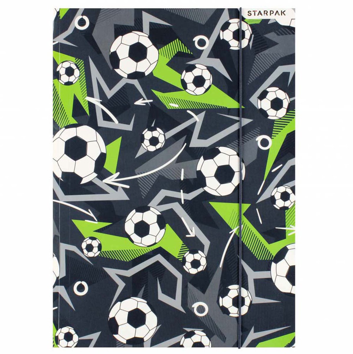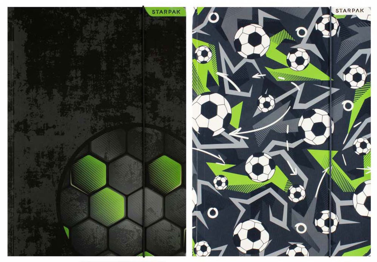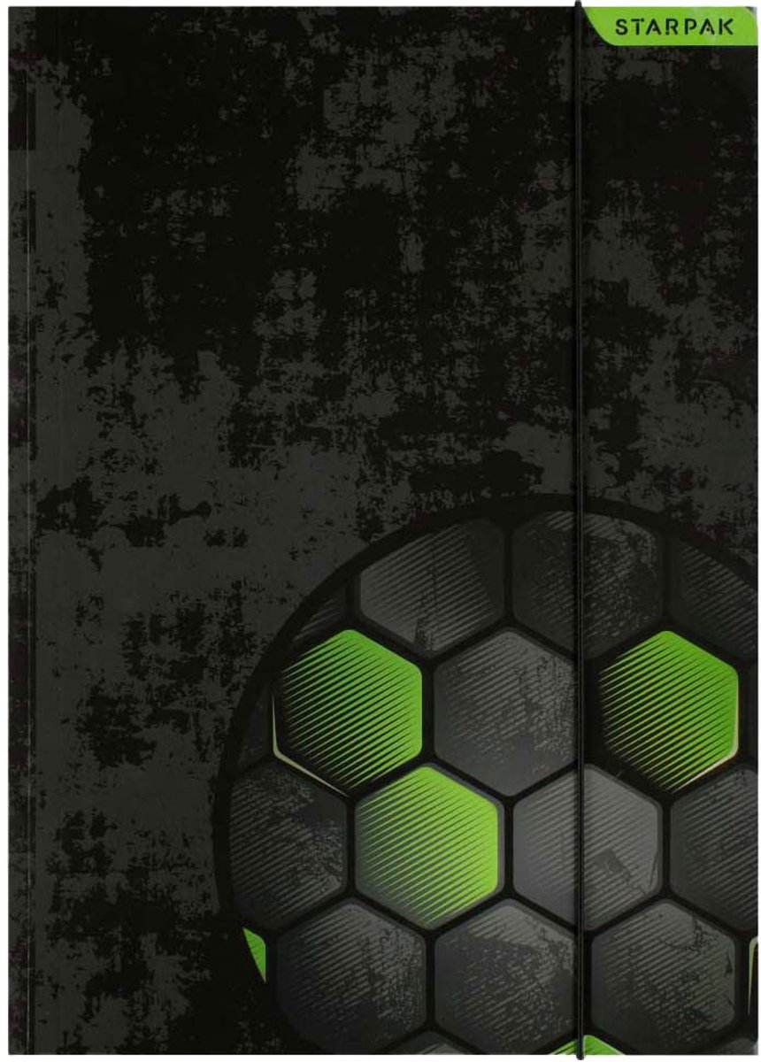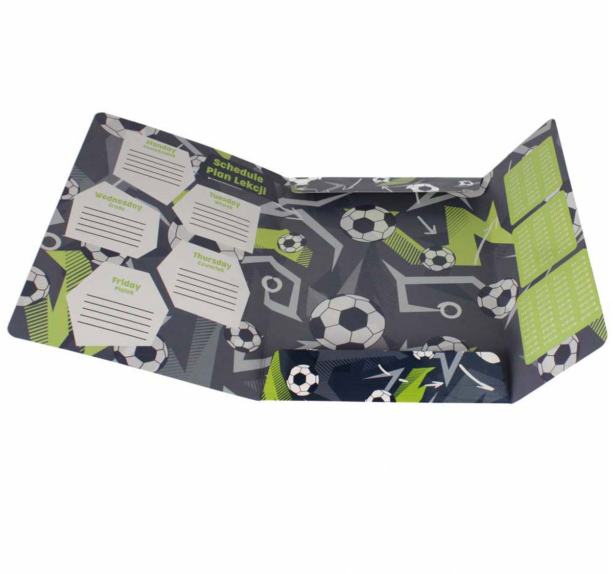 In deze elastomap met flappen en een elastiek zijn op de kaft voetballen gedrukt. In de binnenkant staat een weekplanning.
