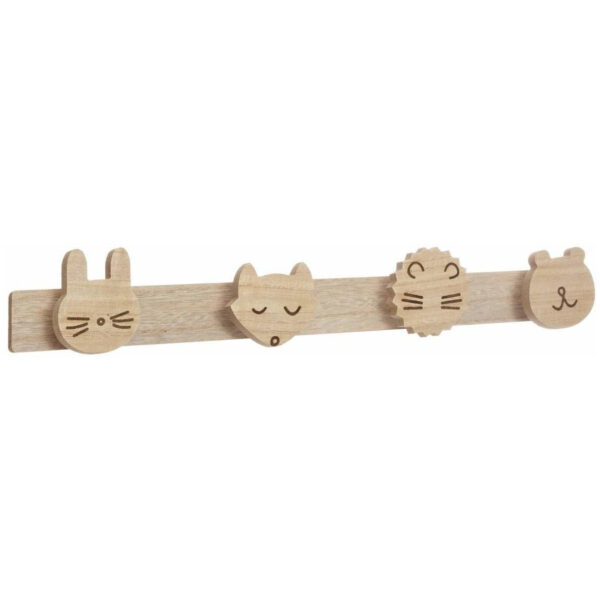 Leuke houten kapstok met 4 dierenkopjes om je jas of kleding aan te hangen.