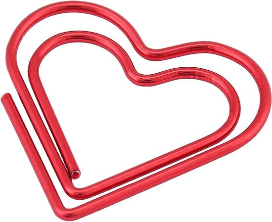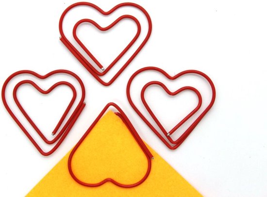 Leuke rode paperclips in de vorm van een hart. De papierklemmen zijn 3 cm hoog.