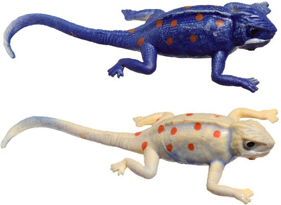Leg de blauwe kameleon in een schaaltje warm water en hij verandert van kleur. Als het water kouder wordt, verandert de kameleon weer terug in de oorspronkelijke kleur.