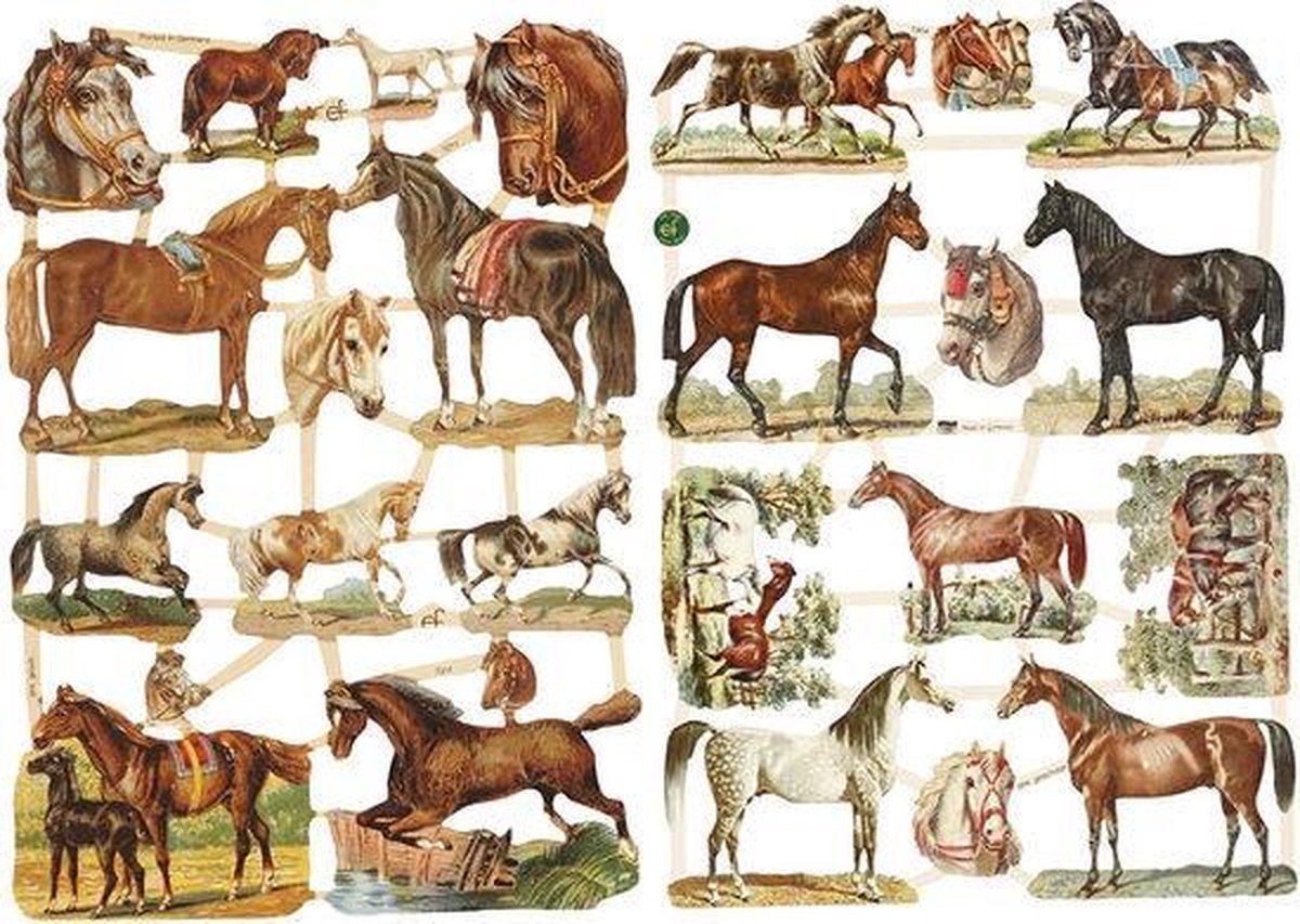 – Vintage plaatjes met klassieke paarden motieven op glanzend papier.