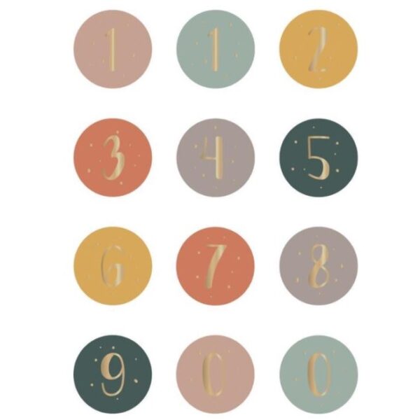 Een velletje met vier keer de cijfers 0 t/m 9 in regenboogkleuren. Leuk om je post, dagboek, verjaardagstraktaties, agenda of spulletjes in huis mee op te vrolijken.
